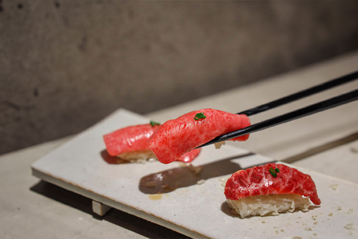 Mainly uses high-quality Kyushu Kuroge Wagyu beef A5 and A4.