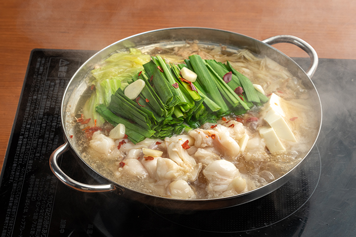 博多の定番、醤油ベースのもつ鍋に、にんにくを効かせた当店ならではの味わい。