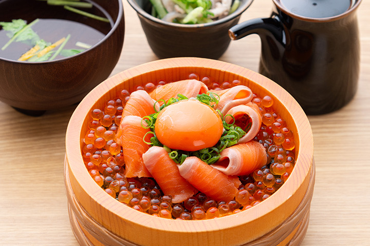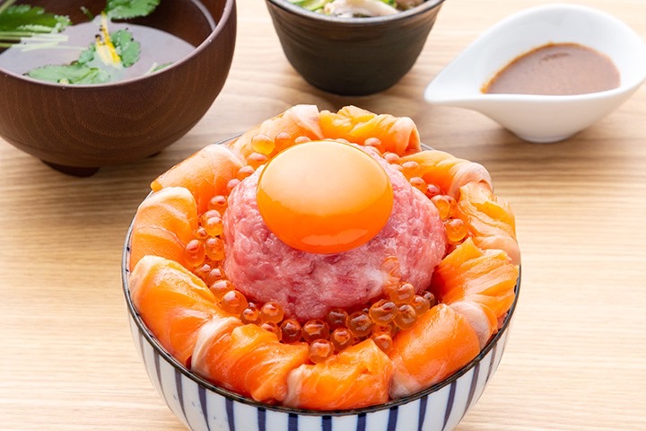 연어와 이쿠라를 사치스럽게 사용해, 한층 더!!쿠로다 밥의 1번 인기 파 토로를 태웠습니다!!욕심이 많은 분에게 최고의 1잔을!!